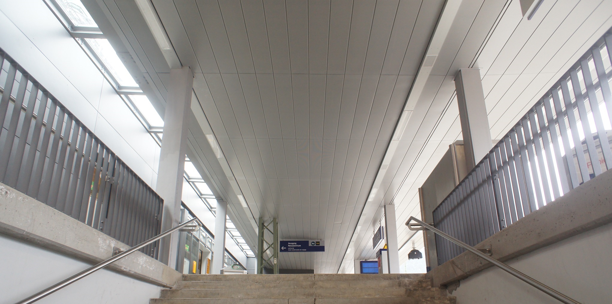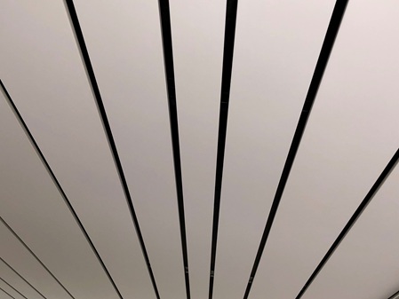 Abgehängte, lineare Deckensysteme sind sehr aktuell und hochmoderrn. Zeitgemäße Architektur verwendet lineare Strukturen!