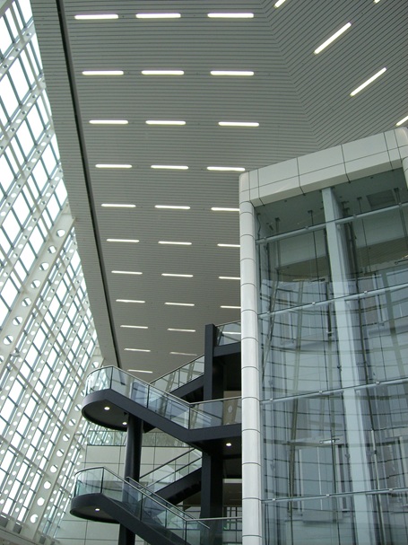 Die abgehängten ORIGINAL DOBNER Metalldecken sind besonders gut geeignet für Flughafen-Gebäude!