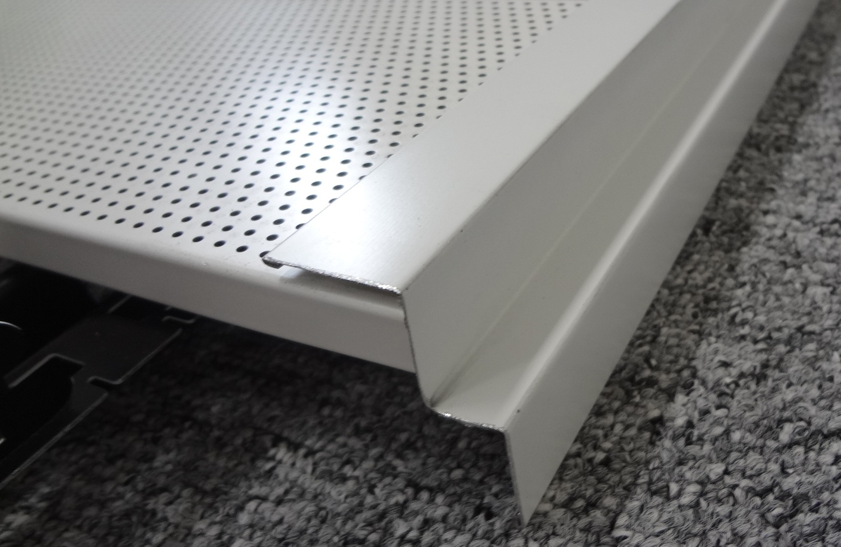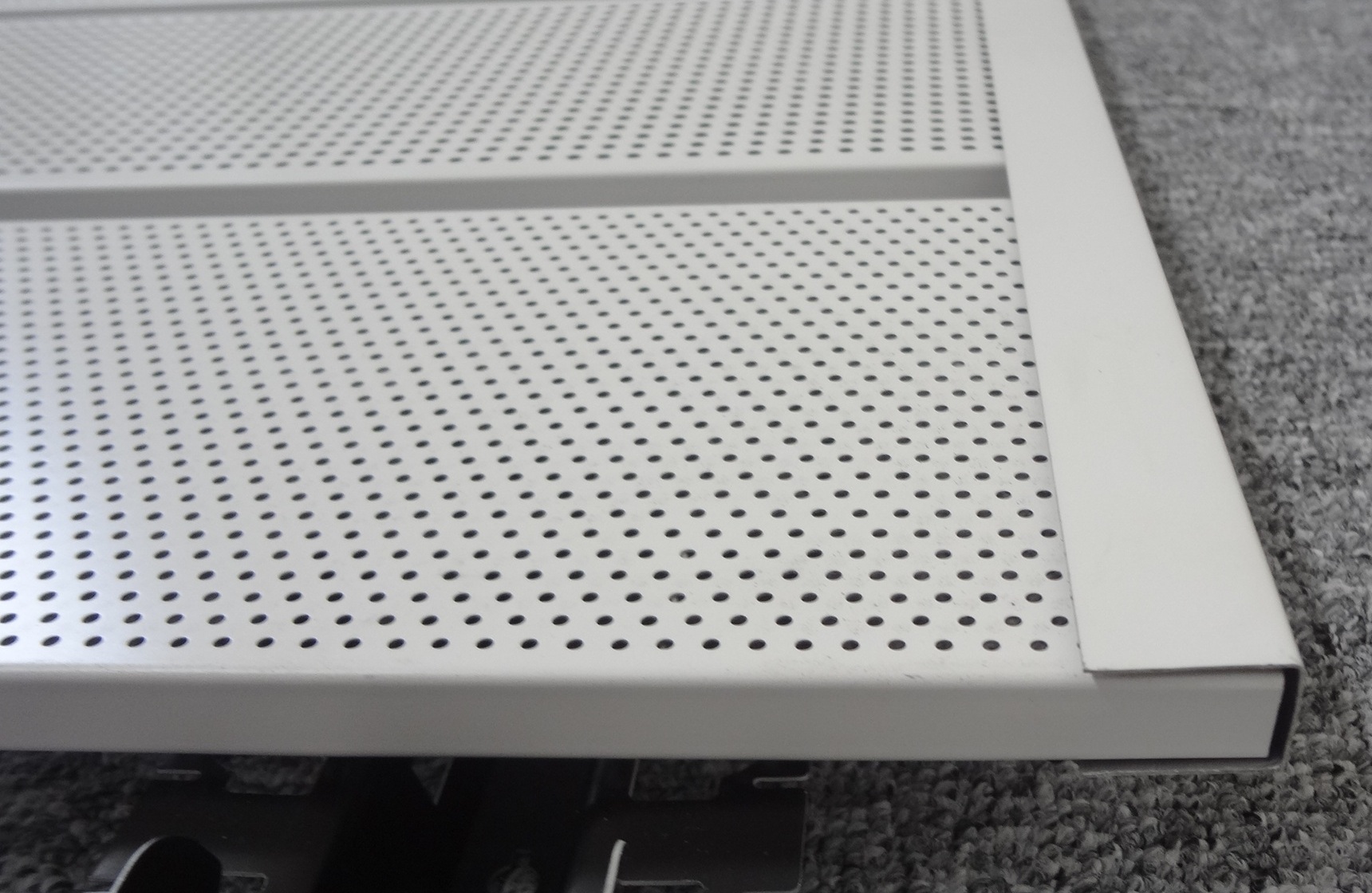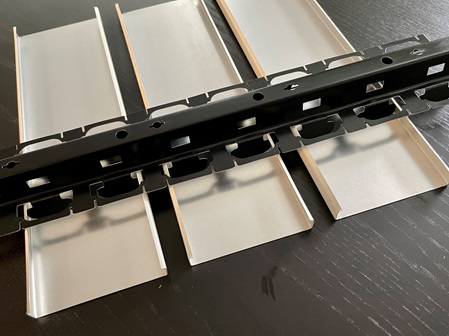 Stöße bei Metallpaneelen sind mit schwarzen Längsverbindern auszustatten. Eine geringfügig optische Beeinträchtigung der Gleichmäßigkeit des Deckenbildes im Paneelstoß ist technisch unvermeidlich.