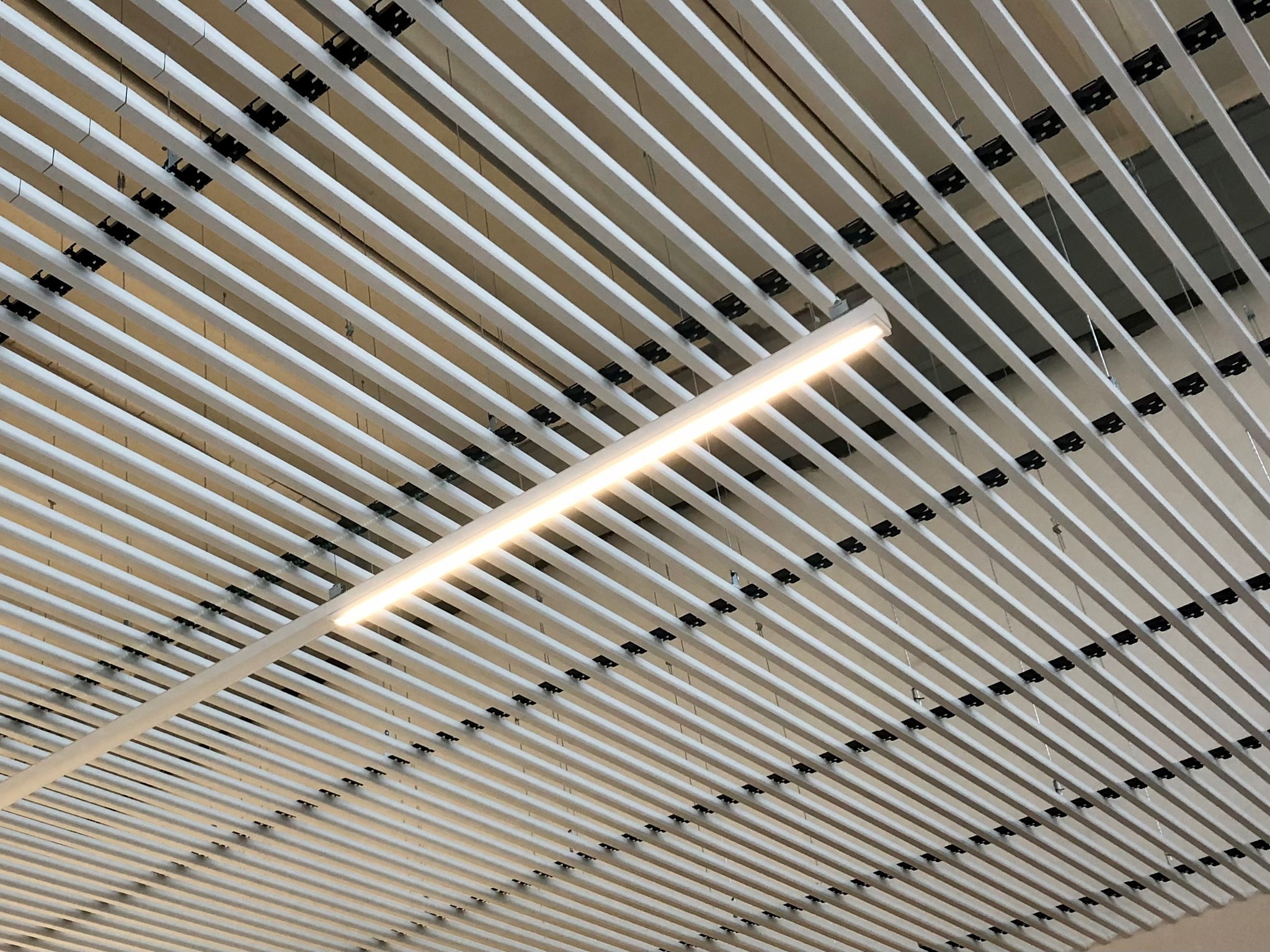 Abgehängte, lineare Deckensysteme sind sehr aktuell und hochmoderrn. Zeitgemäße Architektur verwendet lineare Strukturen!