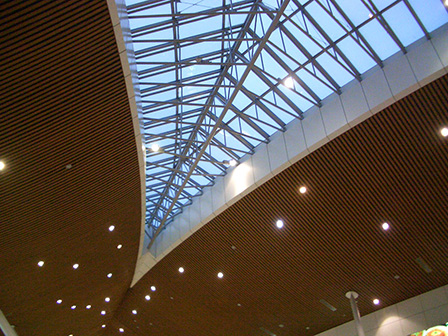 Abgehängte ORIGINAL DOBNER Metalldecke im Außenbereich des  Flughafens Sofia